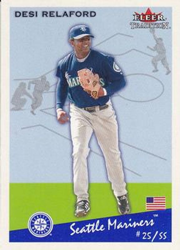 The Desi Relaford 2002 Fleer Tradition Update #U225 Glossy /200 card is 1 of 2 Desi Relaford's card variations in the 2002 Fleer Tradition Update set being tracked by Sports Card Investor, including Base.