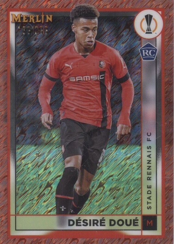Recent Sales of Desire Doue 2022 Topps Merlin Chrome UEFA Club Competitions #133 Rose Gold Shimmer Refractor /299 Rookie Raw
