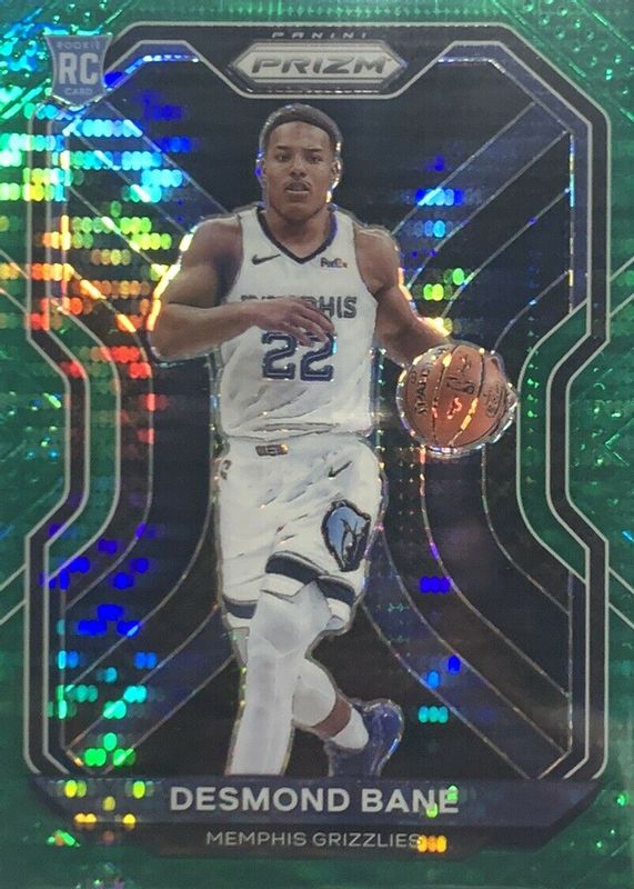 Desmond Bane's Basketball cards are available in at least 77 sets. Desmond Bane's biggest 7-day price movers are 2020 Prizm #297 Green Pulsar /25, 2020 Contenders #116 Rookie Ticket Auto - Premium (Blue Jersey), and 2020 Select #90 Concourse Gold Disco /10.