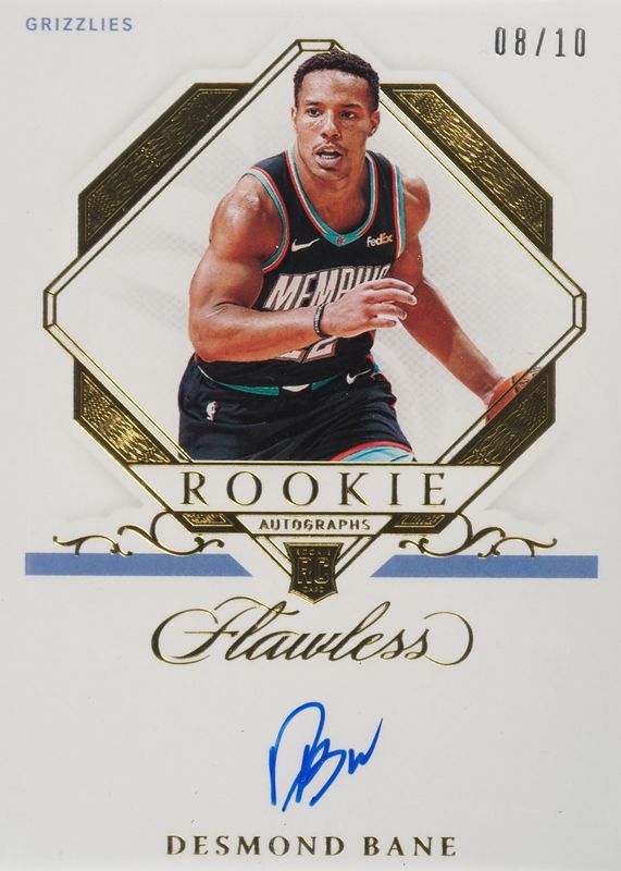 The Desmond Bane 2020 Flawless #FRA-BAN Rookie Autographs - Gold /10 card in Raw condition has not changed in price in the last 30 days and was last sold for $240.00 .