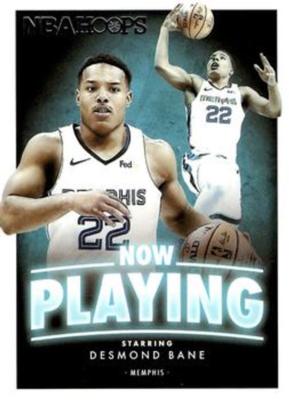 The Desmond Bane 2020 Hoops #SS-16 Now Playing Rookie card is 1 of 43 Desmond Bane's card variations in the 2020 Hoops set being tracked by Sports Card Investor, including Base, Blue, Hyper Blue, Neon Green, and Purple.