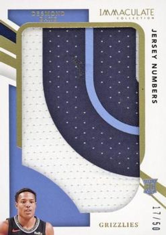 Desmond Bane 2020 Immaculate #JP-DBN Jumbo Patches - Jersey Number /2 Rookie RAW Price Guide