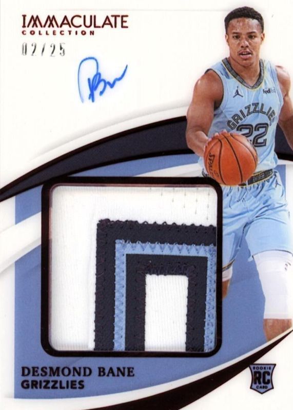 The Desmond Bane 2020 Immaculate #PPA-DES Premium Patch Autographs - Red (/25) Rookie card in Raw condition has not changed in price in the last 30 days and was last sold for $351.00 .