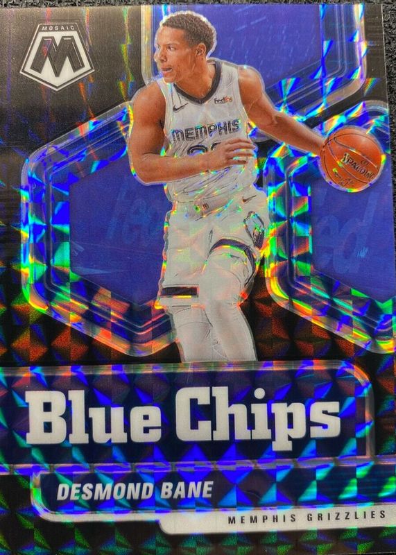 The Desmond Bane 2020 Mosaic #15 Blue Chips - Black /1 Rookie card in Raw condition has not changed in price in the last 30 days and was last sold for $427.00 .