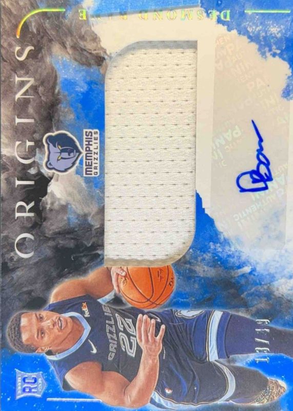 The Desmond Bane 2020 Origins #RJA-BAN Rookie Jersey Autographs - Blue /49 card in Raw condition has not changed in price in the last 30 days and was last sold for $36.00 .