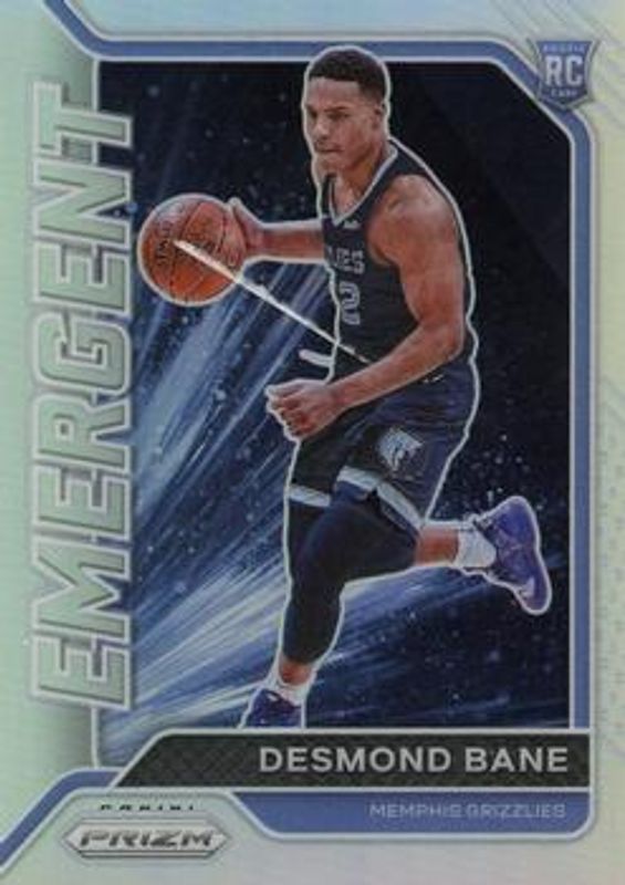 The Desmond Bane 2020 Prizm #30 Emergent - Silver Rookie card is 1 of 73 Desmond Bane's card variations in the 2020 Prizm set being tracked by Sports Card Investor, including Base, Choice Blue Yellow Green, Fast Break, Green, and Green Ice.