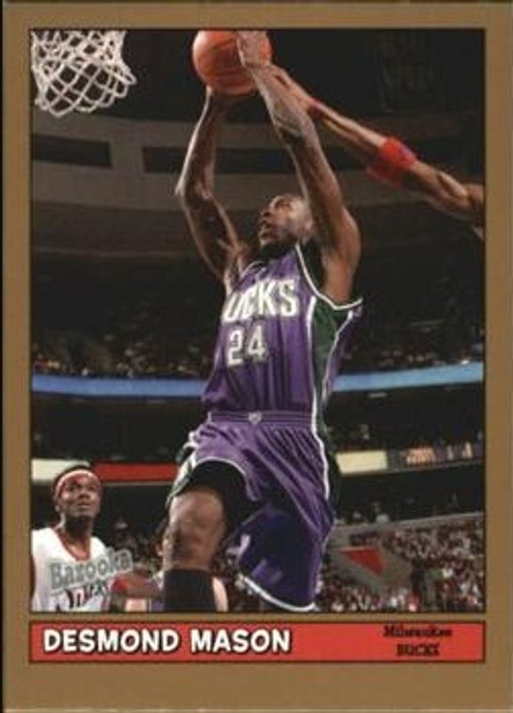 The Desmond Mason 2005 Bazooka #45 Gold card is 1 of 5 Desmond Mason's card variations in the 2005 Bazooka set being tracked by Sports Card Investor, including Base, Minis, Blue /5, and Bazooka Power! Relics.