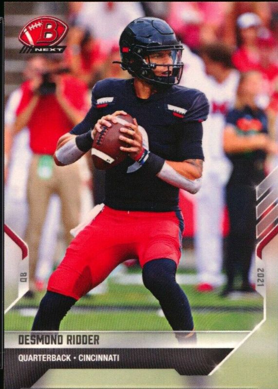The Desmond Ridder 2021 Bowman Next #2 Base (Print Run: 998) card in Raw condition has not changed in price in the last 30 days and was last sold for $3.99 .