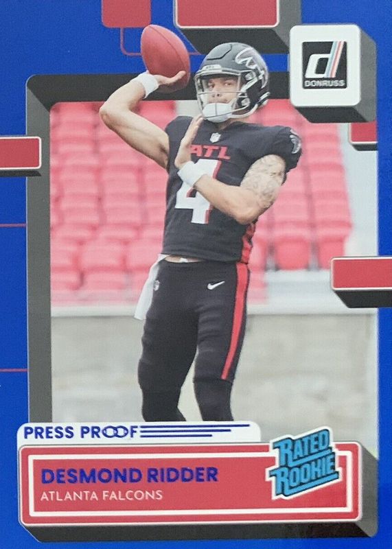 2022 Donruss Football Desmond Ridder Atlanta Falcons Press Proof Blue Rookie 304