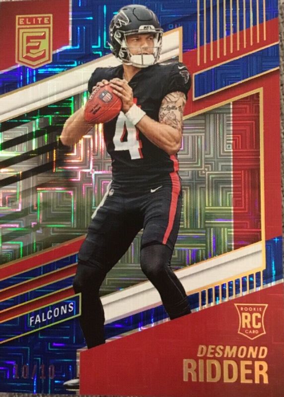 The Desmond Ridder 2022 Elite #105 Blue /10 Rookie card in Raw condition has not changed in price in the last 30 days and was last sold for $51.00 .