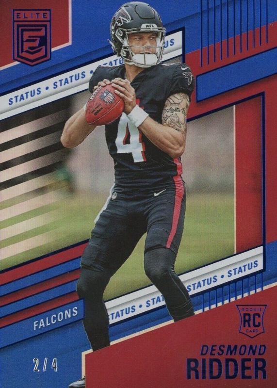 The Desmond Ridder 2022 Elite #105 Status (/4) Rookie card in Raw condition has not changed in price in the last 30 days and was last sold for $47.99 .