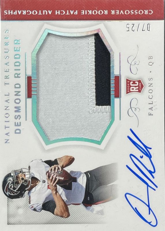 The Desmond Ridder 2022 National Treasures #CRPA-DR Crossover Rookie Patch Autographs - Holo Silver /25 card in Raw condition has not changed in price in the last 30 days and was last sold for $8.50 .