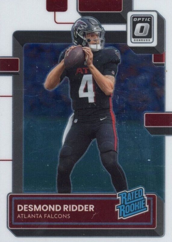 The Desmond Ridder 2022 Optic #202 Base Rookie card in Raw condition has not changed in price in the last 30 days and was last sold for $5.00 .