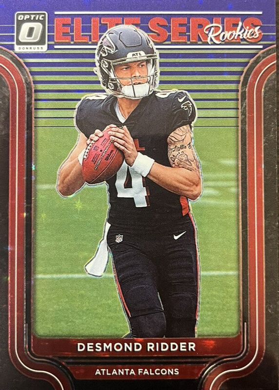 The Desmond Ridder 2022 Optic #ESR-3 The Elite Series Rookies - Purple Stars /25 card in Raw condition has not changed in price in the last 30 days and was last sold for $12.50 .
