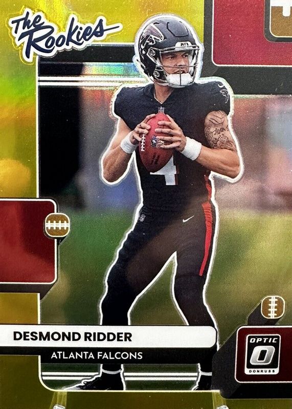 The Desmond Ridder 2022 Optic #TR-3 The Rookies - Gold /10 card in Raw condition has not changed in price in the last 30 days and was last sold for $46.00 .