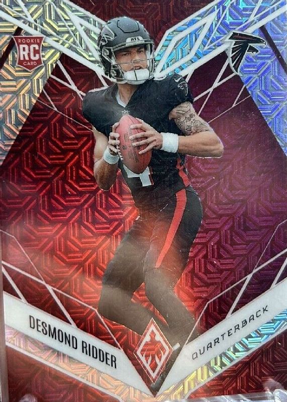 The Desmond Ridder 2022 Phoenix #104 Red Mojo (/10) Rookie card in Raw condition has not changed in price in the last 30 days and was last sold for $61.33 .