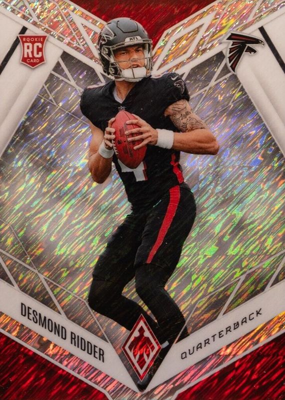The Desmond Ridder 2022 Phoenix #104 White Shimmer /(SSP) Rookie card in Raw condition has not changed in price in the last 30 days and was last sold for $11.99 .
