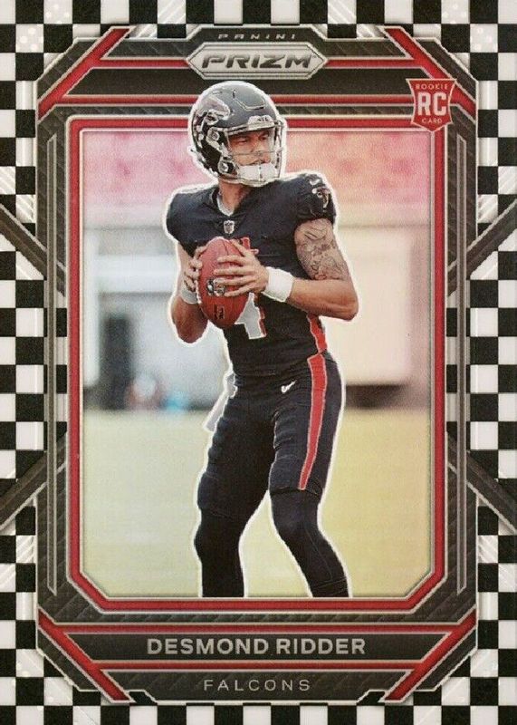 The Desmond Ridder 2022 Prizm #302 Black & White Checker /(SSP) Rookie card in Raw condition has not changed in price in the last 30 days and was last sold for $165.00 .