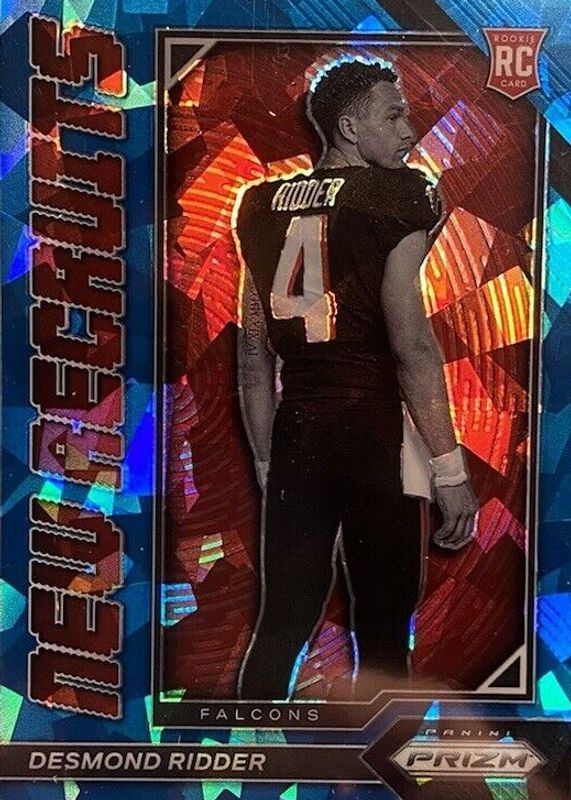 The Desmond Ridder 2022 Prizm #NR-2 New Recruits - Blue Ice /99 Rookie card in Raw condition has not changed in price in the last 30 days and was last sold for $3.99 .