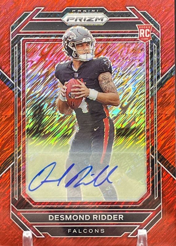 2022 Panini Prizm Desmond Ridder RC #302 FOTL Red Shimmer Auto 23/35 Falcons DT1