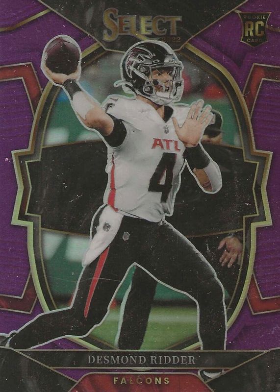 The Desmond Ridder 2022 Select #36 Concourse Purple /75 Rookie card in Raw condition has not changed in price in the last 30 days and was last sold for $3.14 .