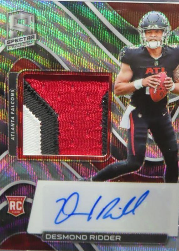 The Desmond Ridder 2022 Spectra #224 Rookie Patch Auto - Wave /25 card in Raw condition has not changed in price in the last 30 days and was last sold for $3.50 .