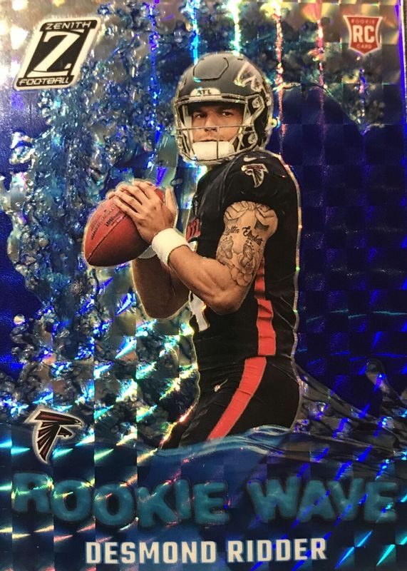 The Desmond Ridder 2022 Zenith #RW-DR Rookie Wave - Blue card in Raw condition has not changed in price in the last 30 days and was last sold for $4.99 .