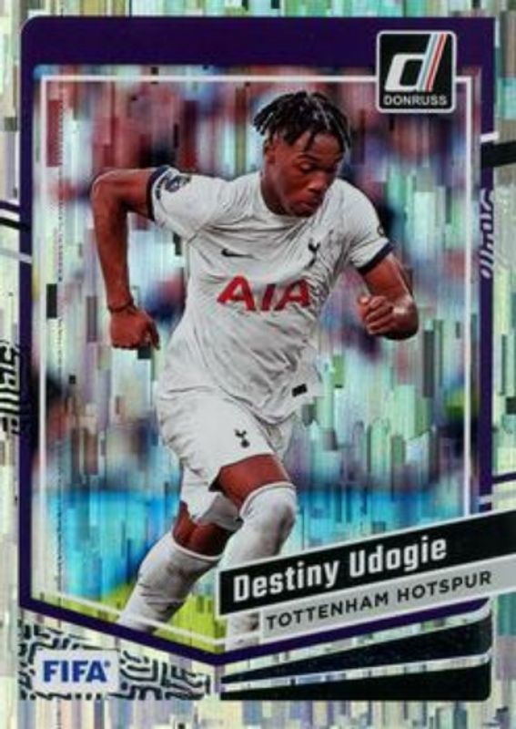 The Destiny Udogie 2023 Donruss #107 Silver card is 1 of 38 Destiny Udogie's card variations in the 2023 Donruss set being tracked by Sports Card Investor, including Base, Optic, Cubic, Diamond, and Optic - Argyle.