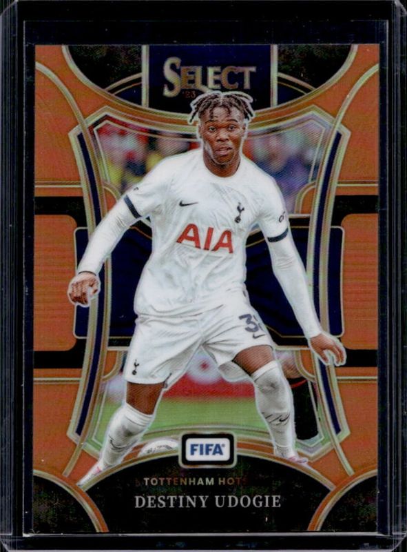 The Destiny Udogie 2023 Select FIFA #123 Orange /49 card is 1 of 33 Destiny Udogie's card variations in the 2023 Select FIFA set being tracked by Sports Card Investor, including Base, Blue, Checkerboard, Green Ice, and Multi Color.