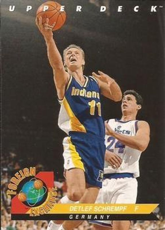 The Detlef Schrempf 1992 Upper Deck French #81 Base card is 1 of 4 Detlef Schrempf's card variations in the 1992 Upper Deck French set being tracked by Sports Card Investor, including #12 Base, #176 Base, and #EB4 Award Winner Holograms.
