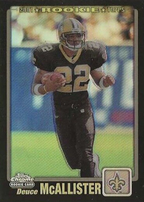 This card is 1 of 2 Deuce McAllister's card variations in the 2001 Topps Chrome set being tracked by Sports Card Investor, including Refractor /999.