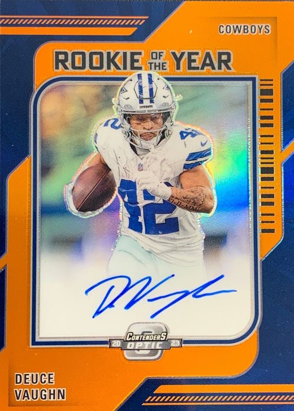 Best Prices Available For Sale of Deuce Vaughn 2023 Contenders Optic #ROY-DV Rookie of the Year Contenders Autographs - Orange /50