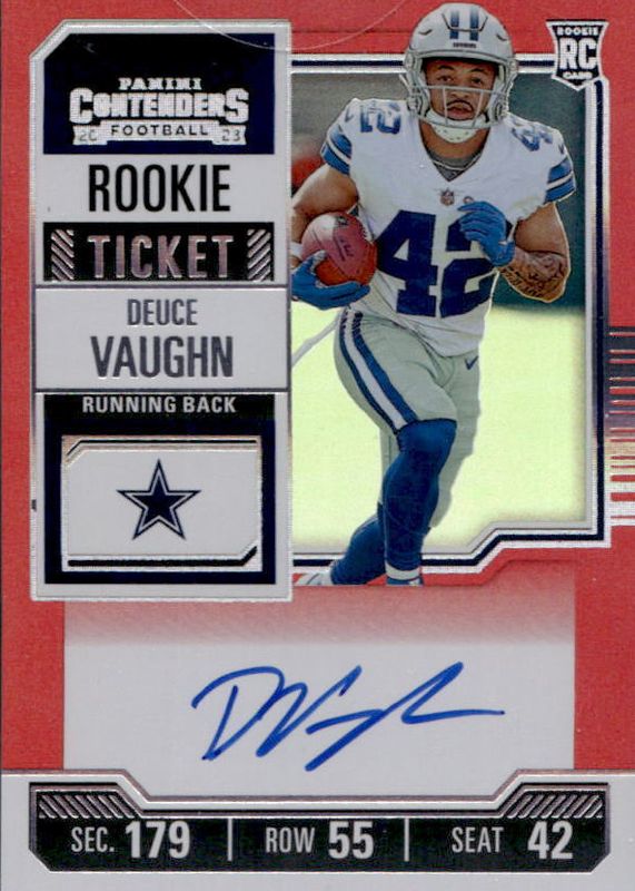 2023 PANINI CONTENDERS FOOTBALL DEUCE VAUGHN RED ZONE ROOKIE TICKET AUTO COWBOYS