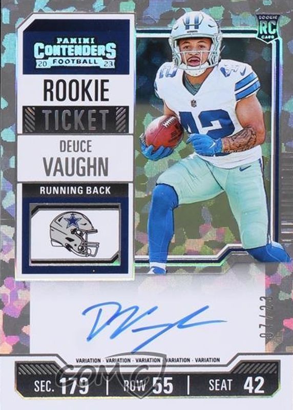 Best Prices Available For Sale of Deuce Vaughn 2023 Contenders #108 Rookie Ticket Auto Variation - Cracked Ice Ticket /23