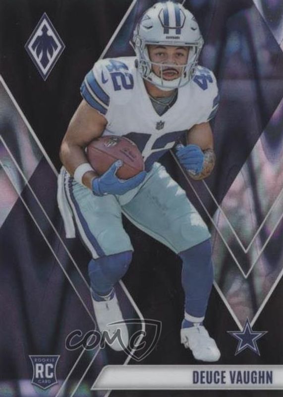 This card is 1 of 28 Deuce Vaughn's card variations in the 2023 Phoenix set being tracked by Sports Card Investor, including Base, Color Burst, Silver, Silver Seismic, and Fire Burst /340.