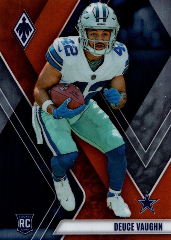 The Deuce Vaughn 2023 Phoenix #134 Orange /99 Rookie card in Raw condition has not changed in price in the last 30 days and was last sold for $2.49 .
