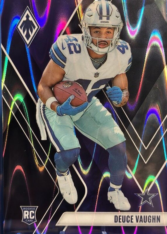 This card is 1 of 28 Deuce Vaughn's card variations in the 2023 Phoenix set being tracked by Sports Card Investor, including Base, Color Burst, Silver, Silver Seismic, and Fire Burst /340.