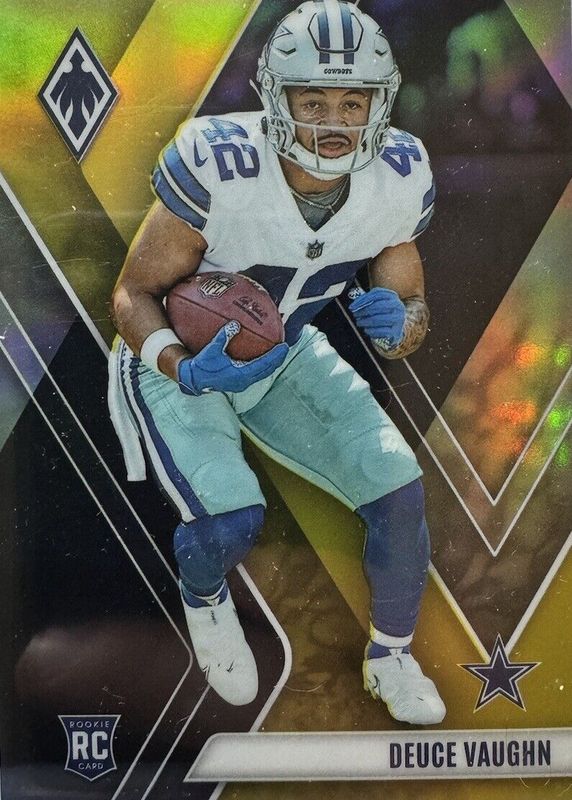 The Deuce Vaughn 2023 Phoenix #134 Yellow /75 Rookie card in Raw condition has not changed in price in the last 30 days and was last sold for $1.51 .