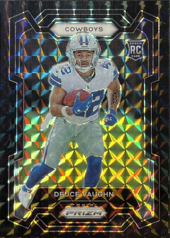 This card is 1 of 83 Deuce Vaughn's card variations in the 2023 Prizm set being tracked by Sports Card Investor, including Base, Disco, Green, Green Ice, and Green Wave.