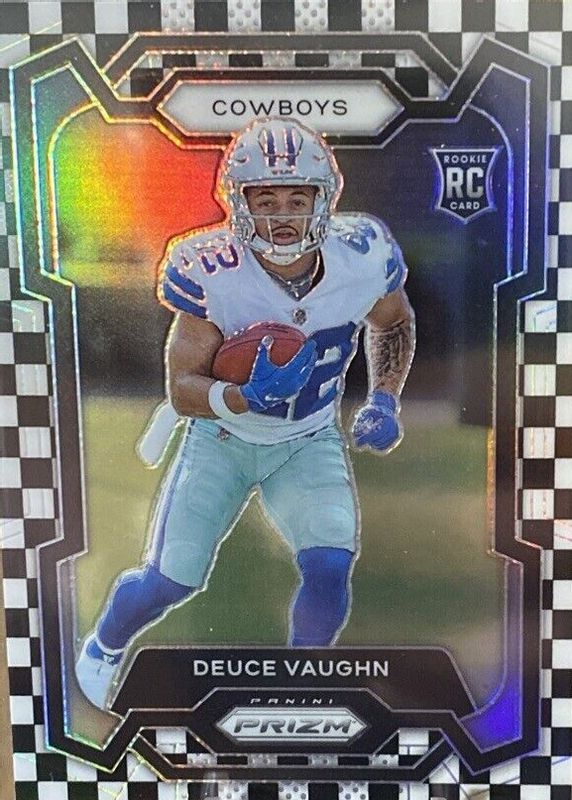 DEUCE VAUGHN 2023 PANINI PRIZM #324 RC ROOKIE BLACK WHITE CHECKER PRIZMS COWBOYS
