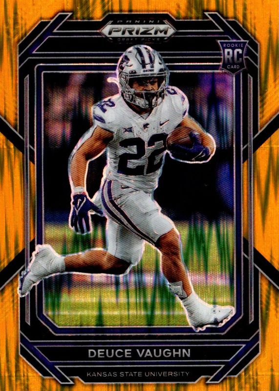 The Deuce Vaughn 2023 Prizm Draft Picks #126 Gold Flash /49 Rookie card in Raw condition has not changed in price in the last 30 days and was last sold for $3.50 .