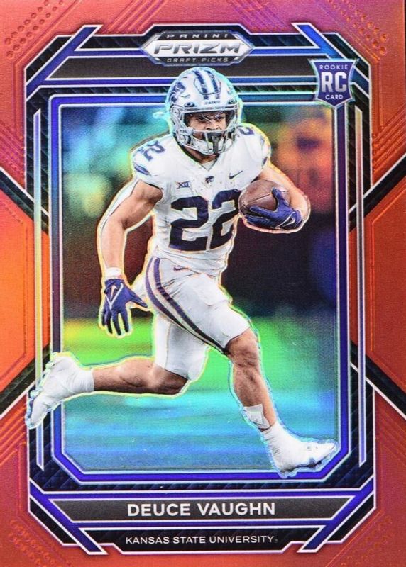 The Deuce Vaughn 2023 Prizm Draft Picks #126 Red /299 Rookie card in Raw condition has not changed in price in the last 30 days and was last sold for $2.90 .