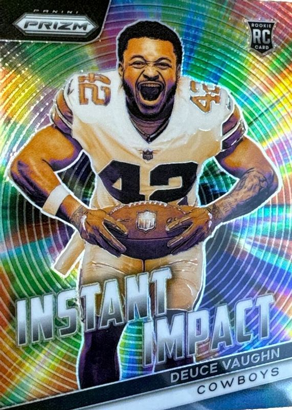 The Deuce Vaughn 2023 Prizm #II-8 Instant Impact /(SSP) Rookie card in Raw condition has not changed in price in the last 30 days and was last sold for $1.25 .