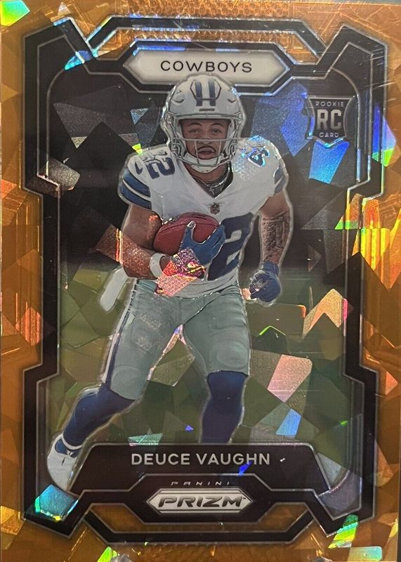 2023 Panini Prizm Deuce Vaughn Rookie Orange Cracked Ice Dallas Cowboys #324