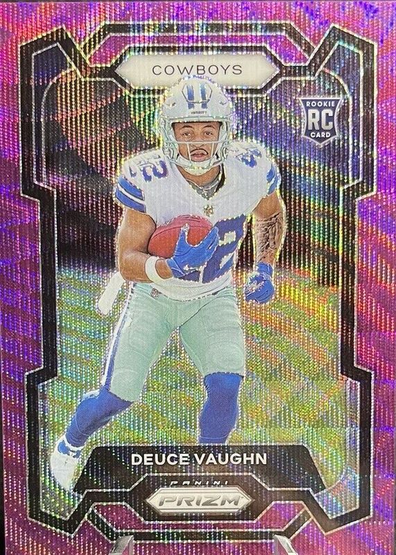 The Deuce Vaughn 2023 Prizm #324 Purple Wave /99 Rookie card in Raw condition has not changed in price in the last 30 days and was last sold for $5.00 .