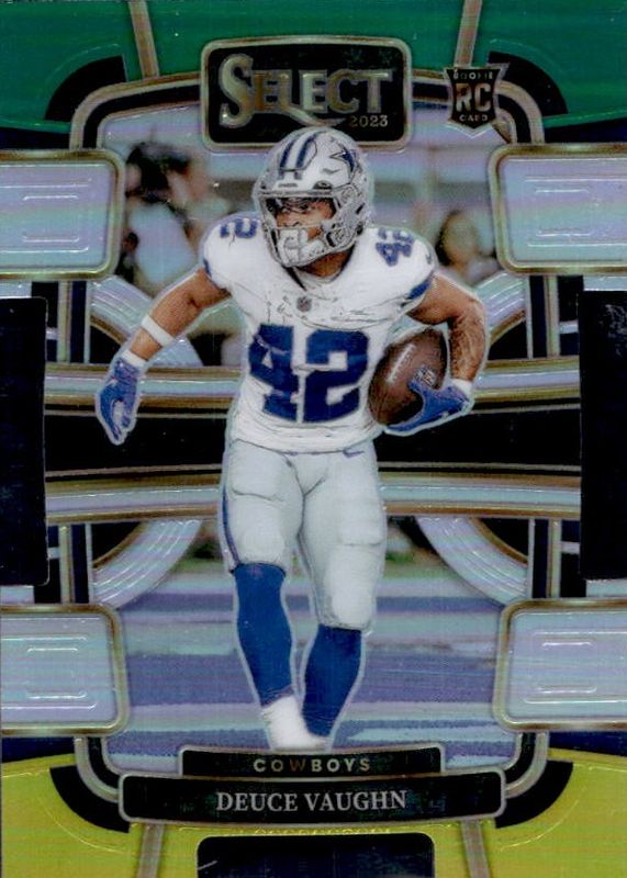 Recent Sales of Deuce Vaughn 2023 Select #28 Concourse Green & Yellow Die-Cut Rookie Raw