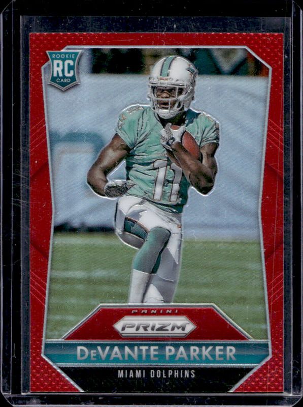 The DeVante Parker 2015 Prizm #228 Red Rookie card is 1 of 44 DeVante Parker's card variations in the 2015 Prizm set being tracked by Sports Card Investor, including #228 Base, #228 Blue, #228b Silver, #228 Silver, and #228 Violet.