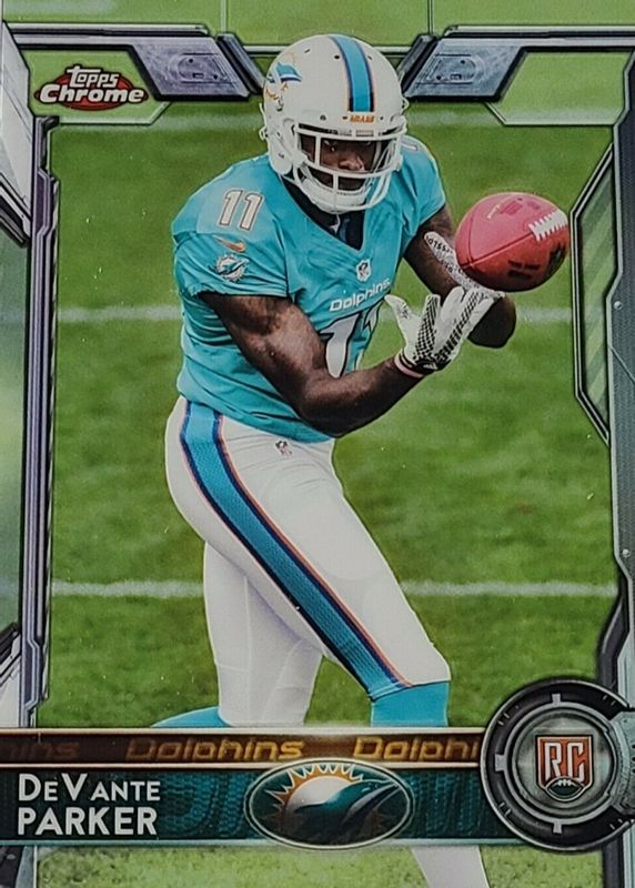 This card is 1 of 15 DeVante Parker's card variations in the 2015 Topps Chrome set being tracked by Sports Card Investor, including Blue Wave Refractor, Diamond Refractor, Green Refractor, Orange Refractor, and Pulsar Refractor.