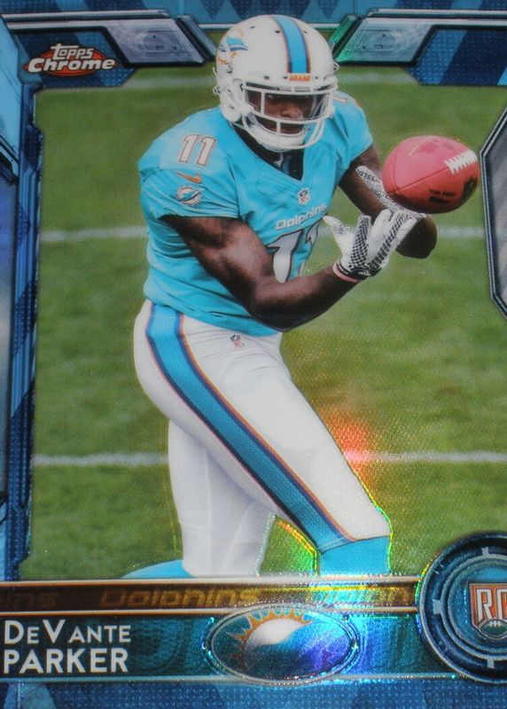 This card is 1 of 15 DeVante Parker's card variations in the 2015 Topps Chrome set being tracked by Sports Card Investor, including Base, Blue Wave Refractor, Green Refractor, Orange Refractor, and Pulsar Refractor.