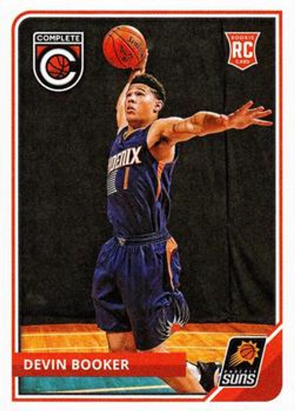 The Devin Booker 2015 Complete #296 Base Rookie card is 1 of 4 Devin Booker's card variations in the 2015 Complete set being tracked by Sports Card Investor, including Gold, Silver, and Autographs.
